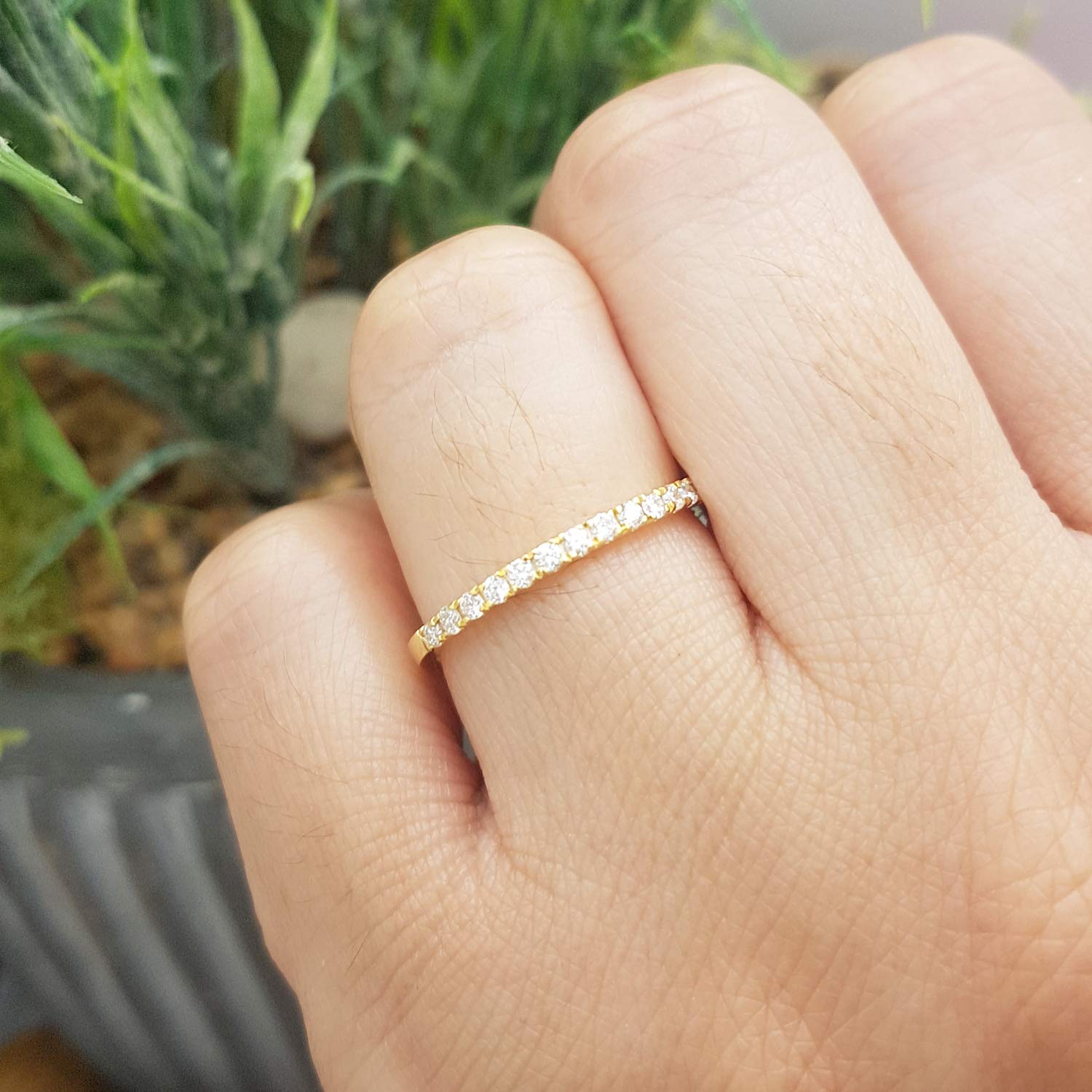 Diamond Wedding Ring Wedding Band Half Eternity Anniversary Ring Micro Pave Stackable Diamond Band 14k Yellow Gold 0 14 Carat Handmade